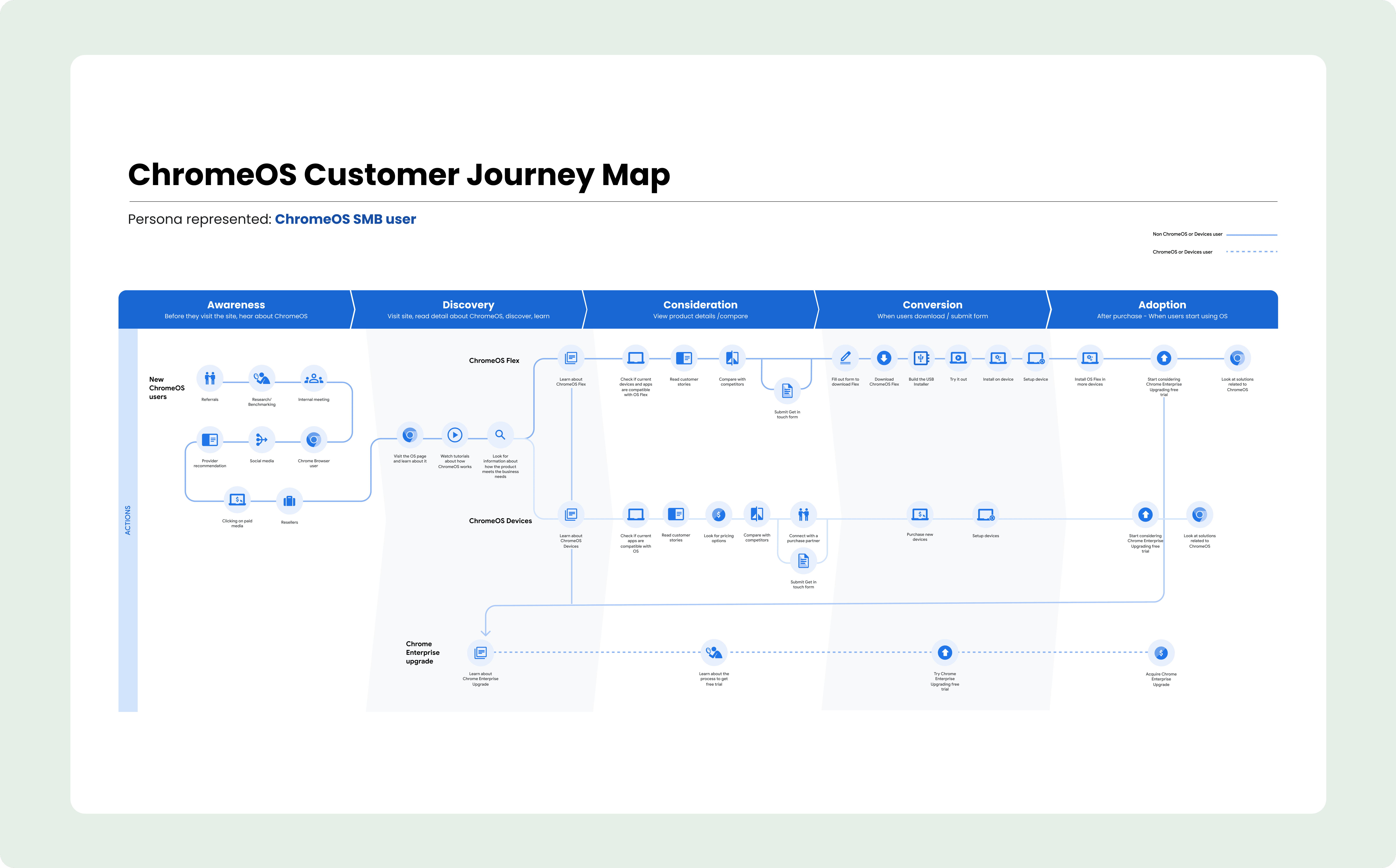 Google Chrome Enterprise is the digital home for two massive products: ChromeOS and Chrome Browser. Our goal was to take one unified site and split it into two distinct, high-performing experiences.